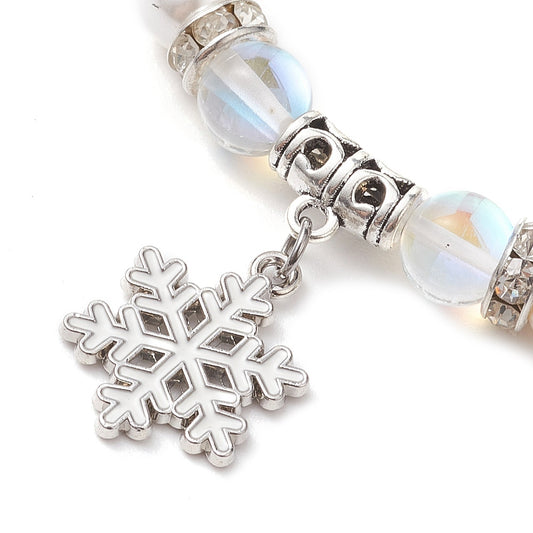 Snowflake Charm Bracelet – Moonstone & Pearl Beaded Stretch Bracelet