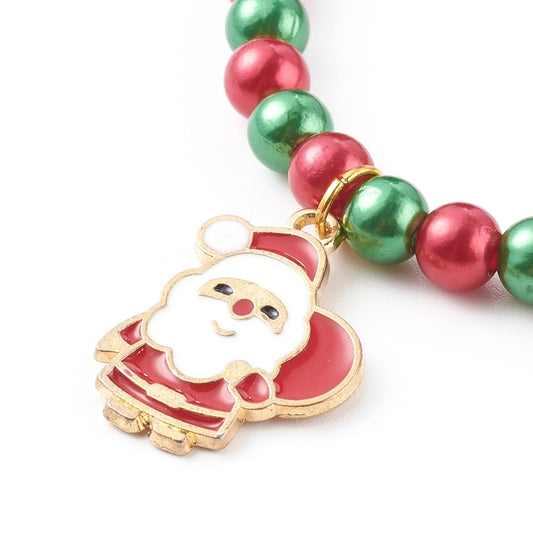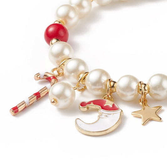 Christmas Charm Pearl Bracelet – Candy Cane, Santa & Star Design