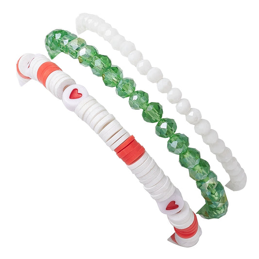 Christmas Beaded Bracelet Set – 3 Stackable Holiday Styles