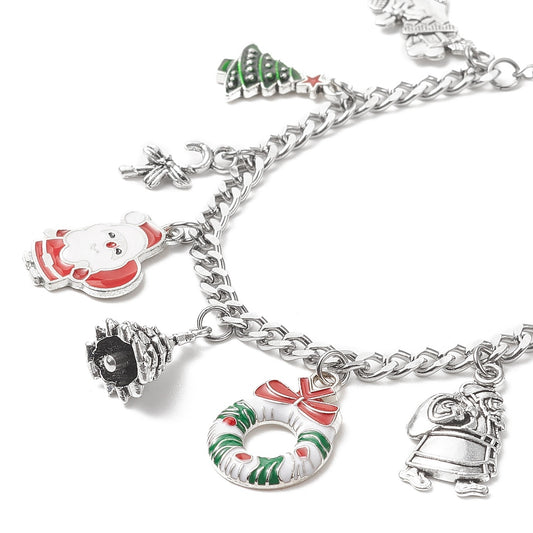 Christmas Tree, Wreath & Santa Claus Holiday Charm Bracelet